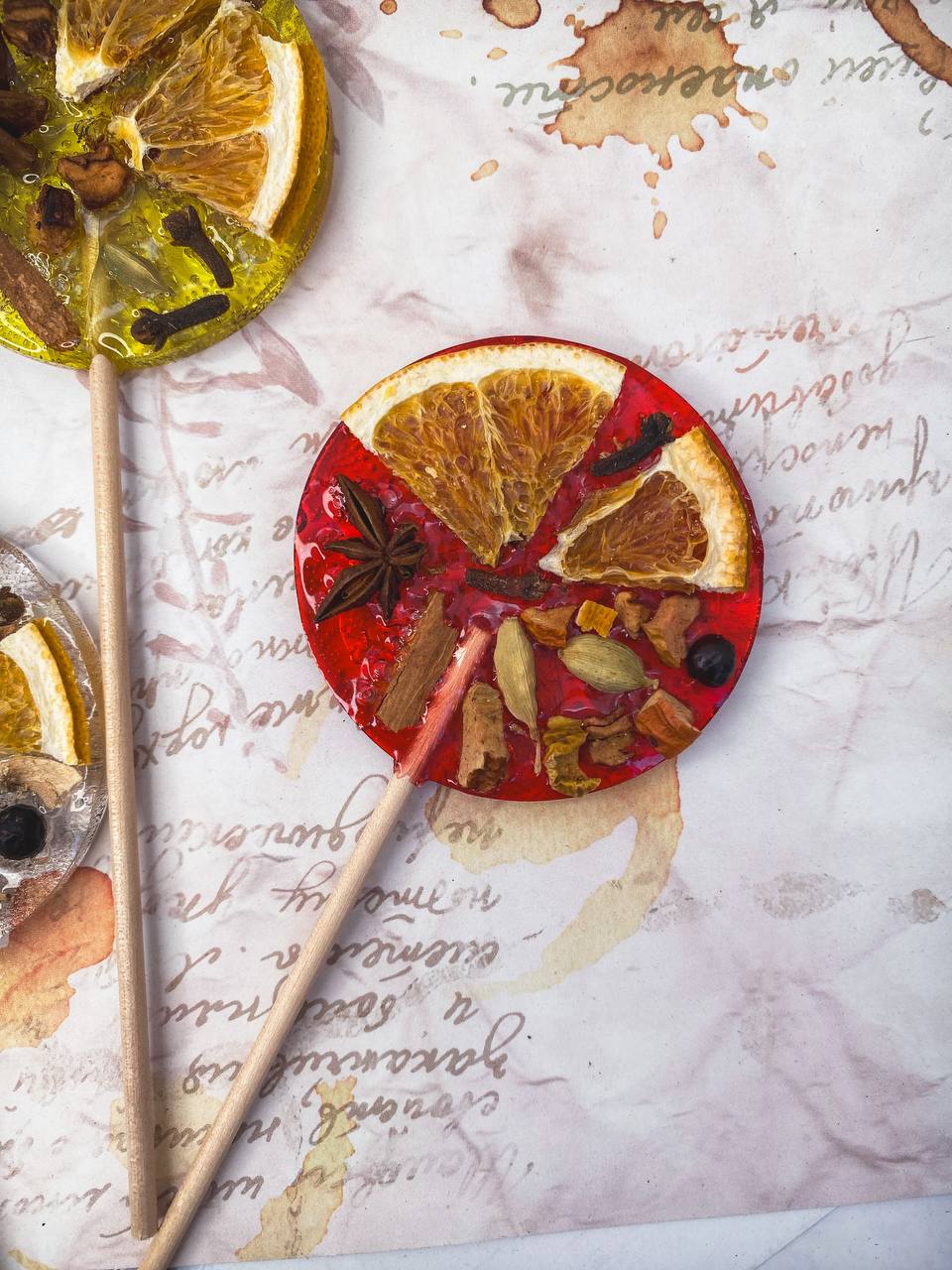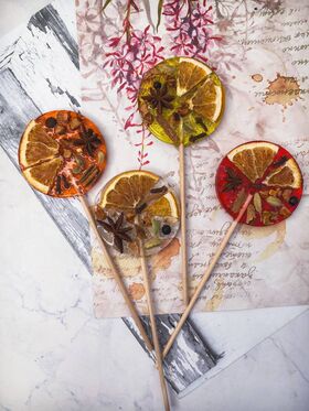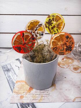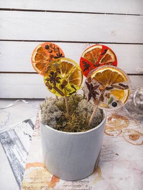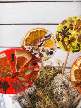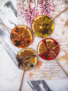 Достаточно опустить леденец в подогретое вино/ сок, в течение 5 минут карамель растворится, а специи отдадут свой аромат. Леденец растает, а специи останутся плавать. 1 леденец рассчитан до 500 мл вина/сока.