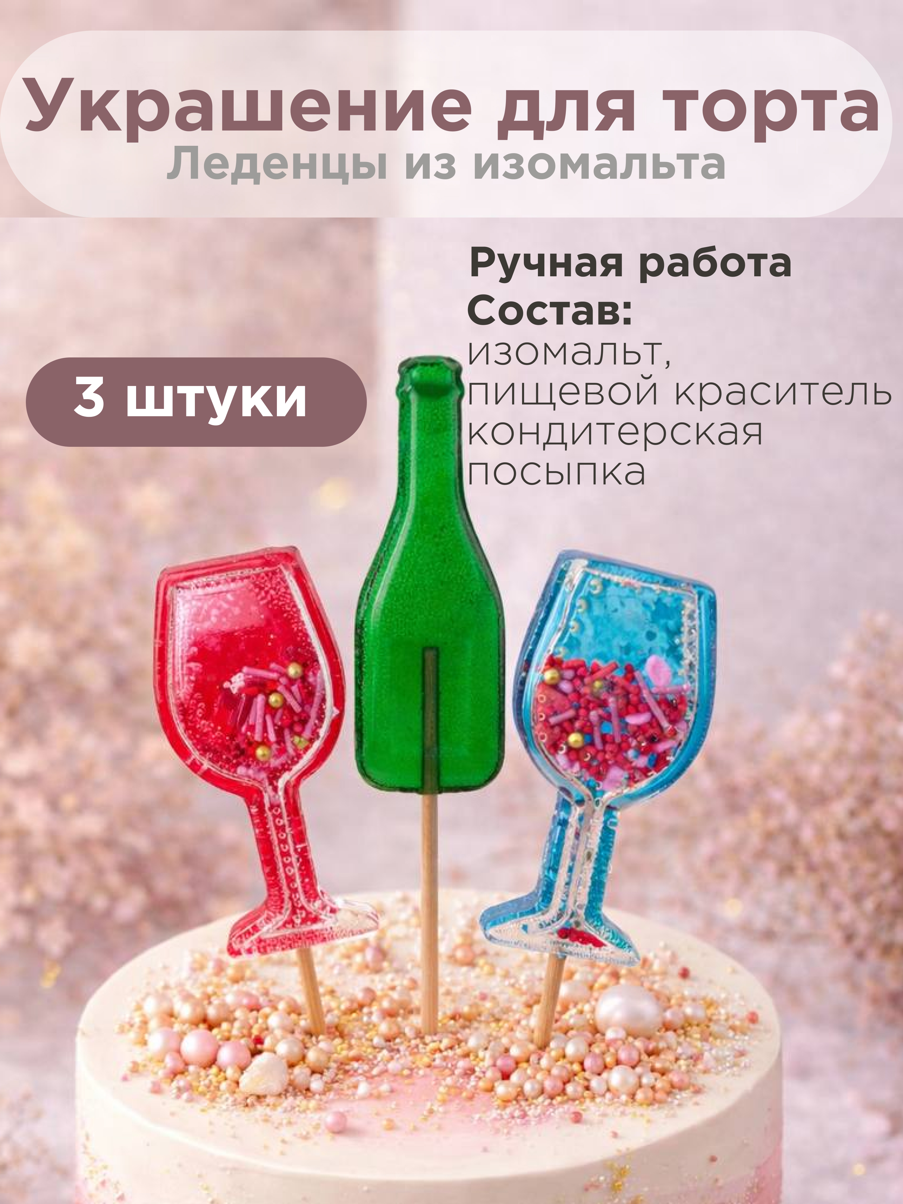 Элегантные леденцы из изомальта станут идеальным акцентом для праздничного торта или десерта. Изготовлены из натуральных ингредиентов с использованием безопасных пищевых красителей и кондитерской посыпки, они выглядят ярко и привлекательно даже без дополнительной отделки.