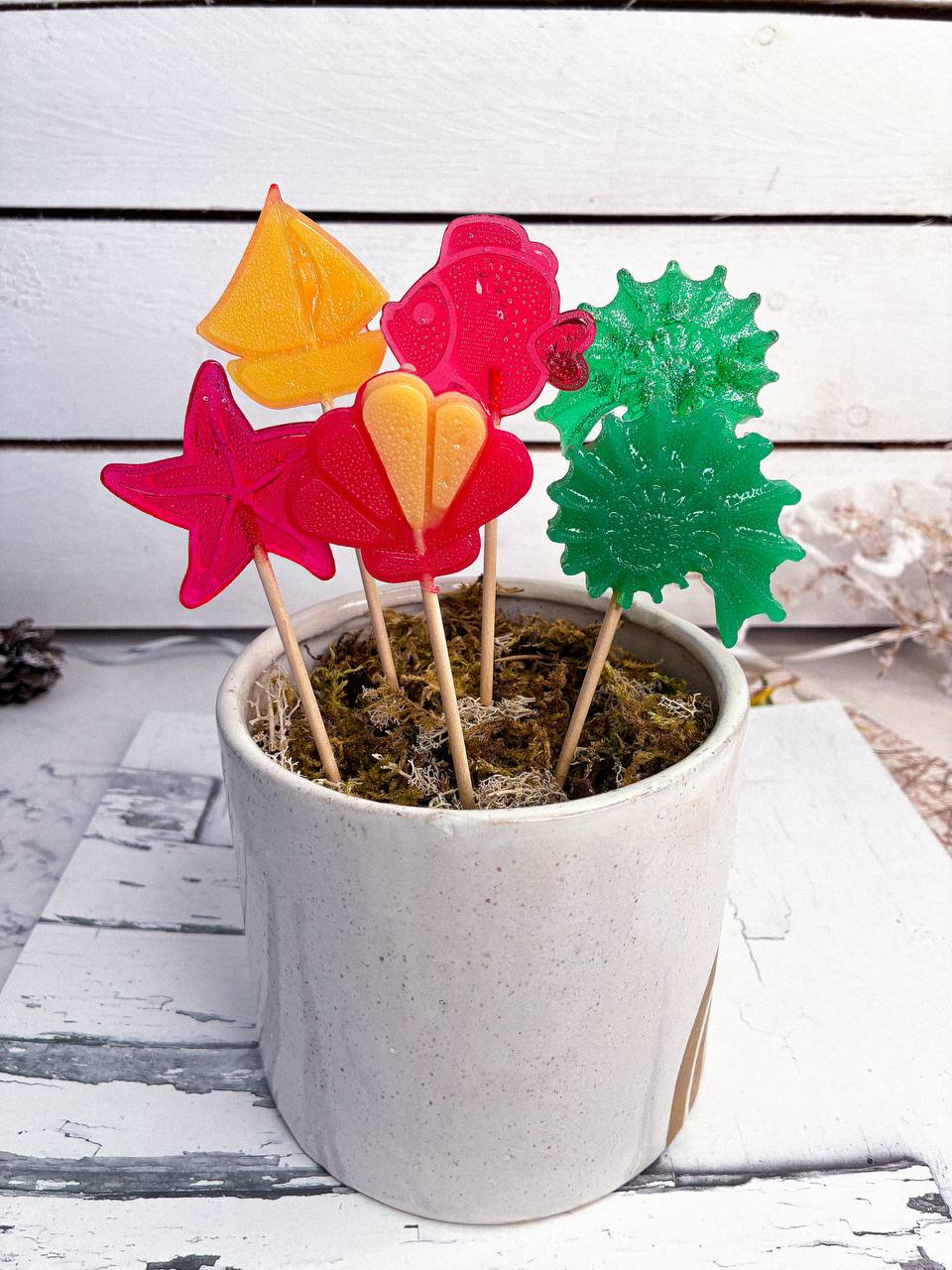 Лёгкие и прочные, леденцы легко сочетаются с любыми вкусами и текстурами. Идеально подходят для создания оригинальных композиций, которые подчеркнут ваш стиль и внимание к деталям.