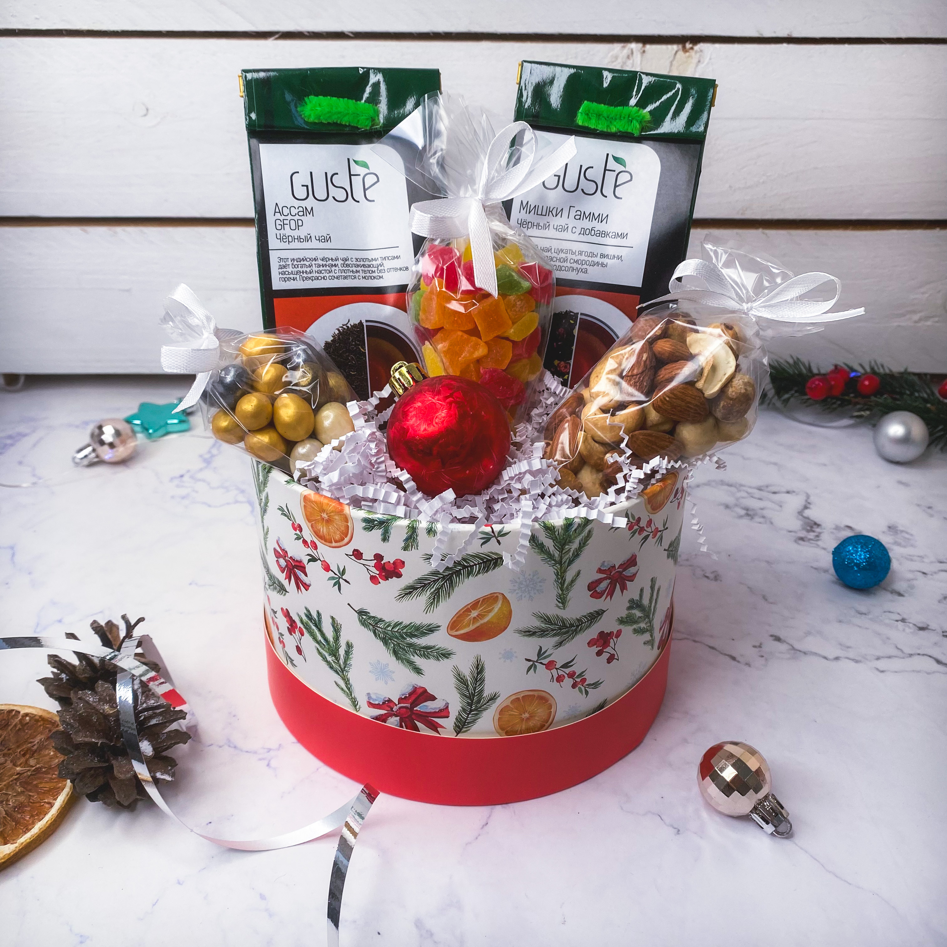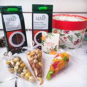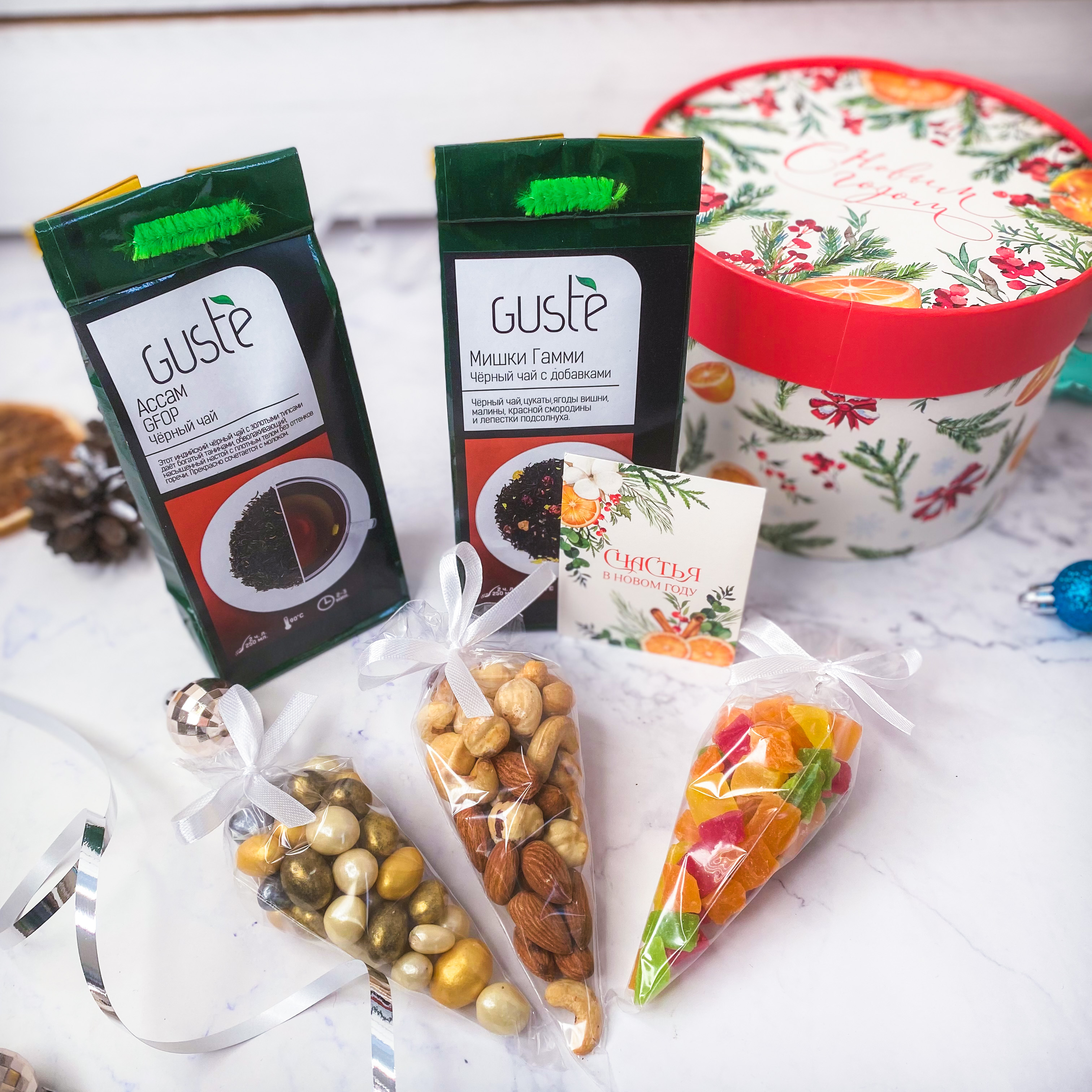 Этот набор станет отличным подарком к Новому году. Он включает в себя два вида чая, а также в наборе различные виды орехов, которые отлично подойдут в качестве перекуса.