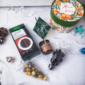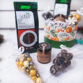 "Новогодний комплимент" - это идеальный подарок для тех, кто ценит натуральные и полезные продукты. В красивой упаковке вы найдете черный чай, ассорти орешков и натуральный мед. Этот подарок станет приятным знаком внимания для ваших родных, друзей и коллег.