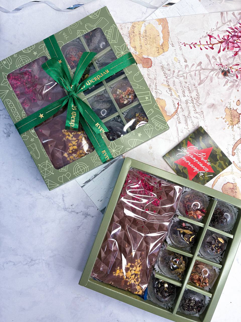 Подарочный набор мужской из 8 чайных мини-бомбочек и шоколадки, 23 февраля
