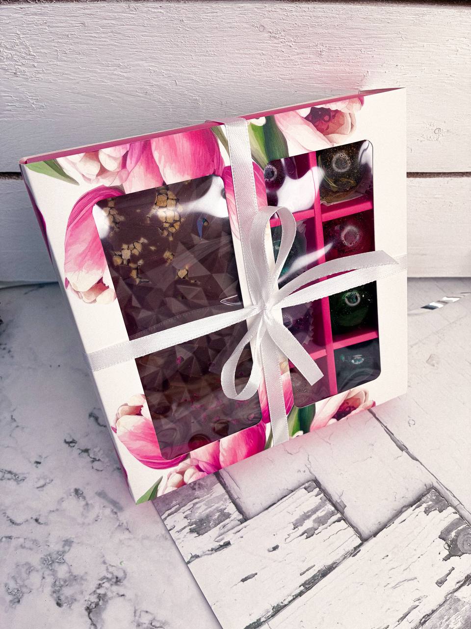 Подарочный набор женский из 8 чайных мини-бомбочек и шоколадки